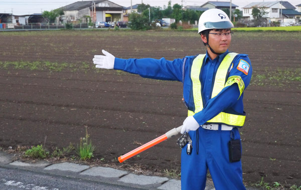 入社して一年の間に、交通誘導、雑踏警備、プールの監視業務などの現場を経験し、最近は少しずつ管制業務も教えてもらっています。警備の仕事は、現場で作業する方だけでなく通行する一般の方の安全も守らなければならない使命感のある仕事です。日によって現場の状況が変わっていくので大変ですが、先輩に助けてもらいながら、一日無事に終わった時は達成感を感じることができ、やりがいにつながっています。