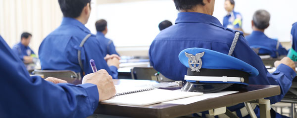 研修では、最も基本的なあいさつから徹底的に教育し、基本を大切にする警備員を育成しています。また、独自の人事考課制度を取り入れるなど、隊員の資質向上に努めています。